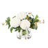 Rogue’s Chrysanthemum Berry arrangement in the Classic Bowl blends soft white blooms with sprigs of green berries and glossy foliage. Set in a gently curved vase with clear faux water, this statement piece brings freshness and elegance to dining tables or entryways.